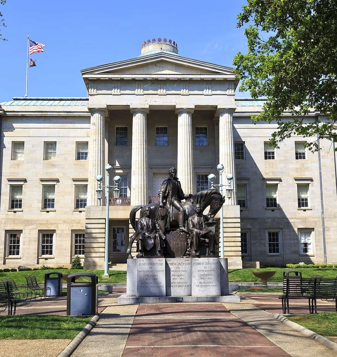 Monuments and Union Square. Step outside and you’ll find Union Square, dotted with monuments to U.S. presidents from North Carolina, governors, and military veterans. There are statues of Andrew Jackson, Andrew Johnson, and James K. Polk, as well as two historical cannons from 1748. The square is a peaceful spot for a walk or a picnic, and it’s easy to imagine the city’s early days from this vantage point. The Capitol’s location in the heart of Raleigh means you’re just steps from other top attractions like Science Center and City Market.