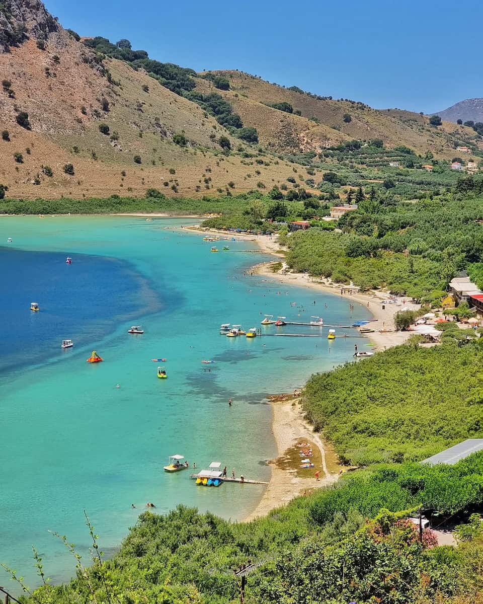 Lake serenity. After the urban exploration, I drove 30 minutes to Lake Kournas, Crete’s only freshwater lake. The contrast between the turquoise waters and surrounding mountains created a landscape that felt more like Austria than Greece. Renting a pedal boat (€10 for 30 minutes) allowed me to reach the center of the lake for panoramic views.