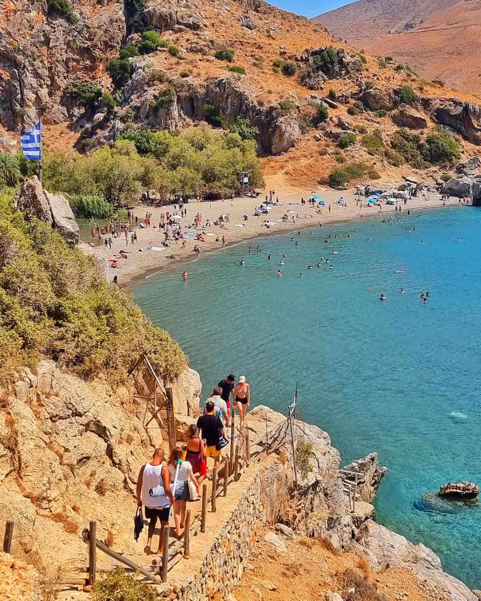 Physical challenge. The trail descends over 1,200 meters, putting significant strain on knees and ankles. I’m glad I brought proper hiking boots and trekking poles – this is definitely not a flip-flop friendly excursion from Rethymno town!