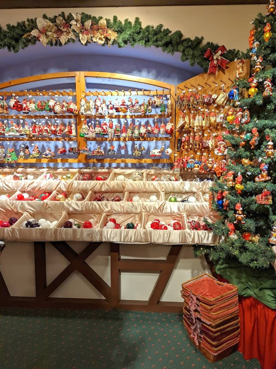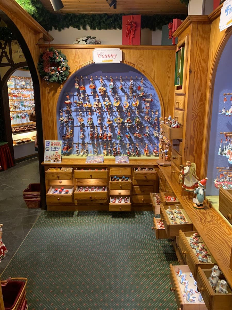 Käthe Wohlfahrt’s Christmas Village offers year-round Christmas decorations. The town also features numerous artisan shops selling handcrafted items and specialty food stores with local products.