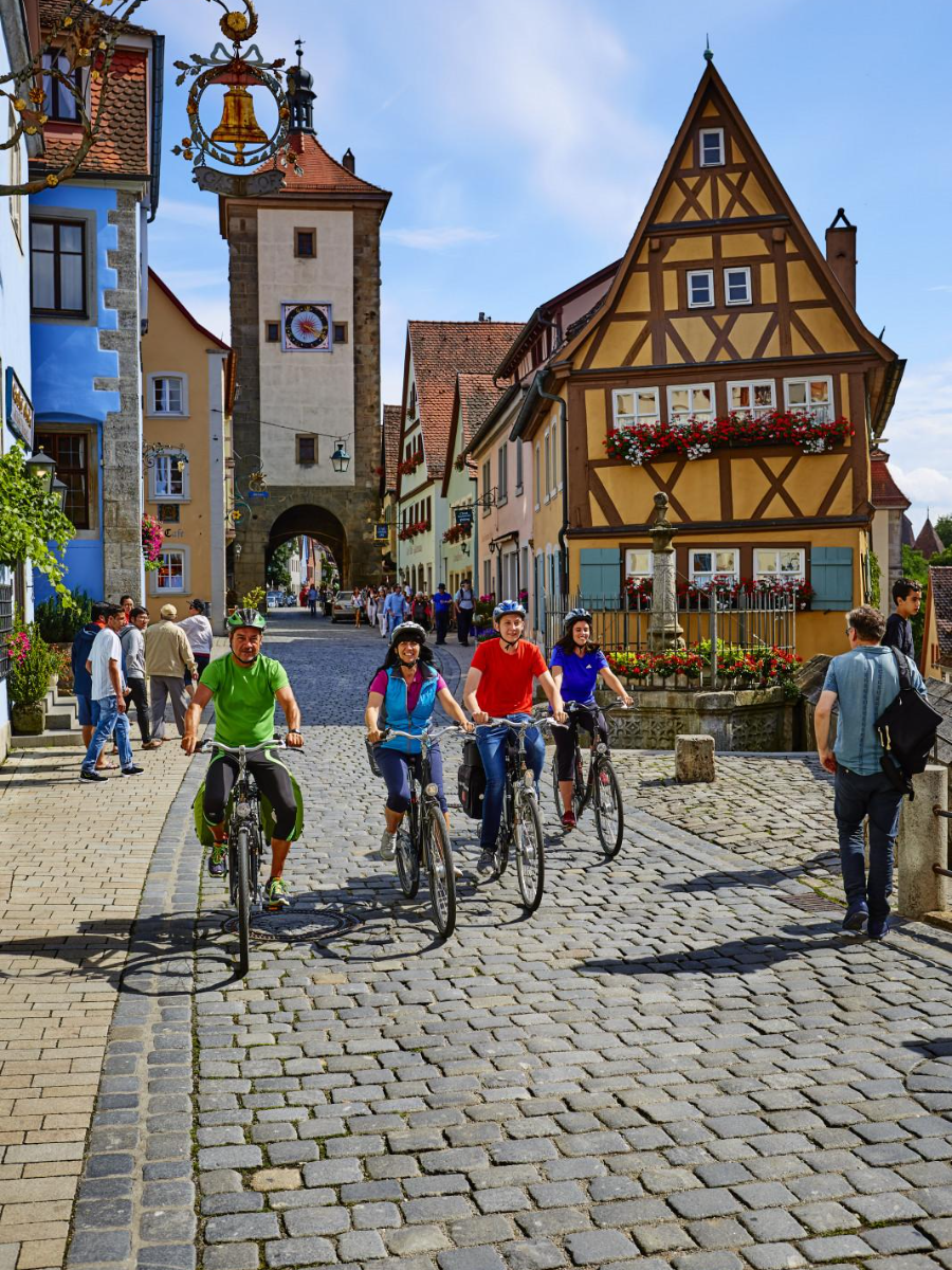 Rent bikes (€15/day) to cycle along the Liebliches Taubertal route or take hiking trails to viewpoints like Detwang village or Topplerschlösschen for beautiful perspectives of Rothenburg.