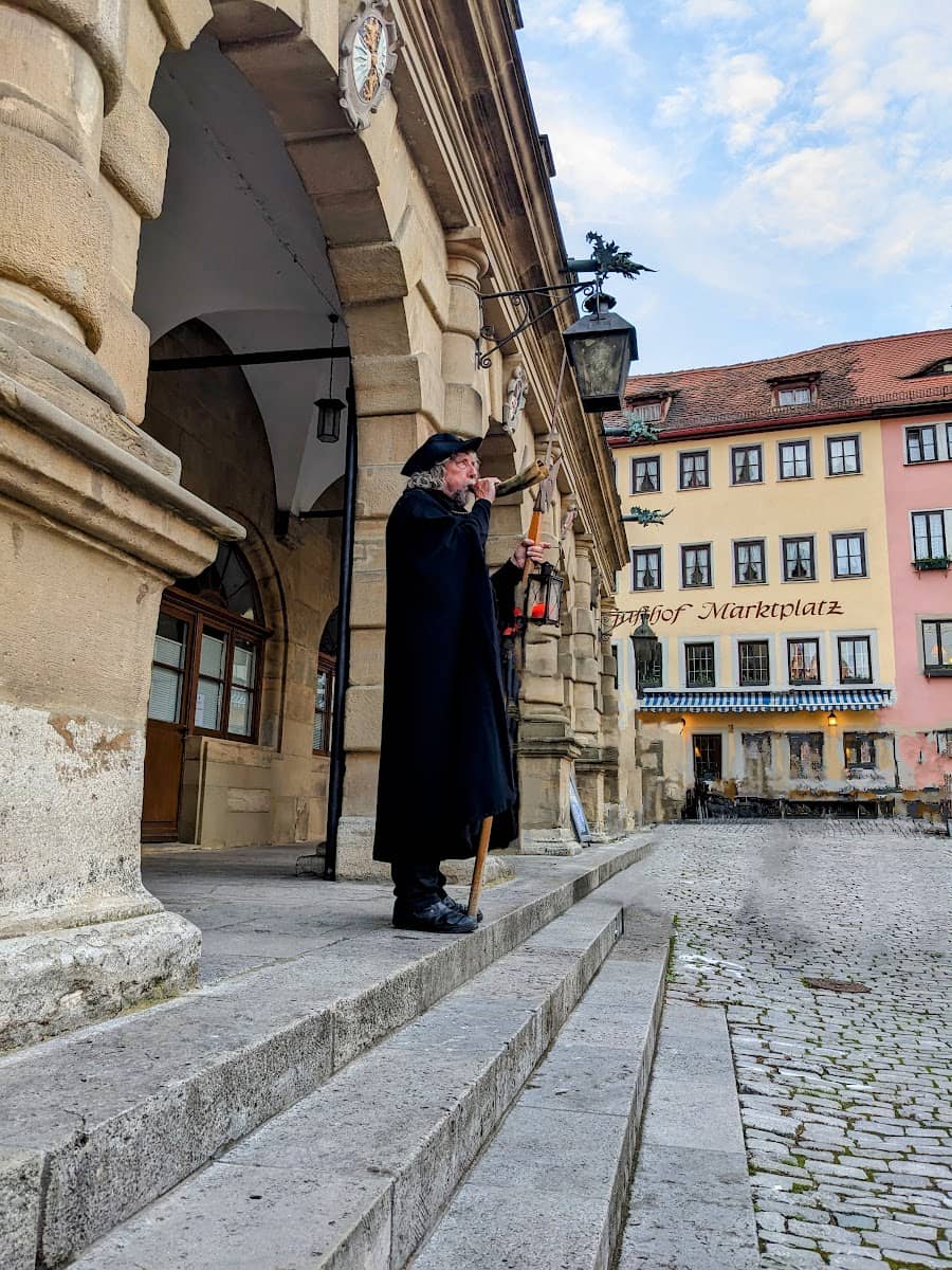 Walk a section of the city wall, visit Market Square with its Town Hall Tower, photograph the Plönlein corner, and explore the Medieval Crime Museum. End with the Night Watchman Tour.