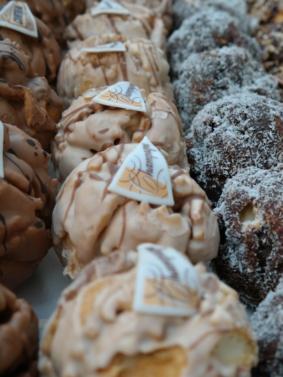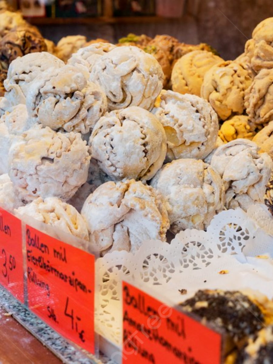 Taste Experience. Despite their donut-like appearance, Schneeballen have a completely different texture – crunchy on the outside with a somewhat bland interior. The traditional powdered sugar version costs around €2.50-3.00, while specialty flavors can reach €4-5. I found the smaller versions (under €2) provided a better sampling experience, as the full-sized treats can be quite filling.