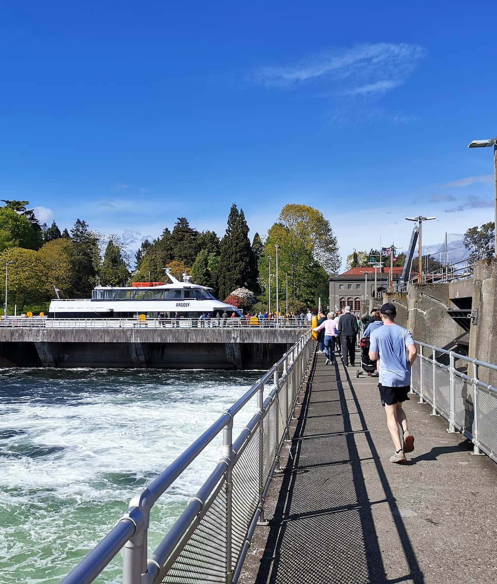 Salmon viewing. The fish ladder allows salmon to bypass the locks during their migration. Through underwater viewing windows, I watched sockeye, chinook, and coho salmon making their incredible journey upstream – a truly unique Seattle experience.