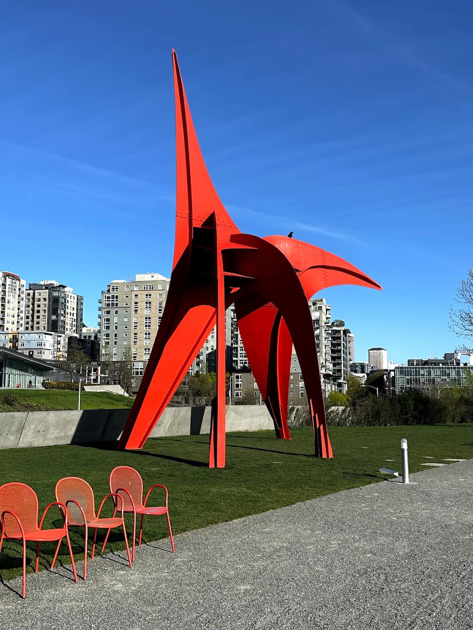 - The outdoor “Sun” sculpture against the Space Needle backdrop