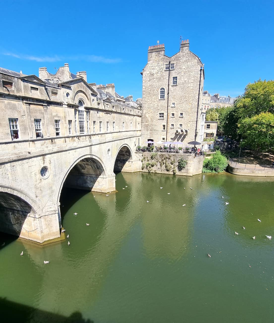 Georgian architecture. Bath’s uniform honey-colored buildings create one of Britain’s most harmonious cityscapes. The Royal Crescent spans 500 feet in a perfect arc, while The Circus forms a complete circle inspired by the Colosseum. Pulteney Bridge is one of only four bridges worldwide with shops built across its full span. For the best views, climb to Alexandra Park or take the skyline walk from Bathwick Fields – both offer panoramic vistas across the city nestled in its green valley.