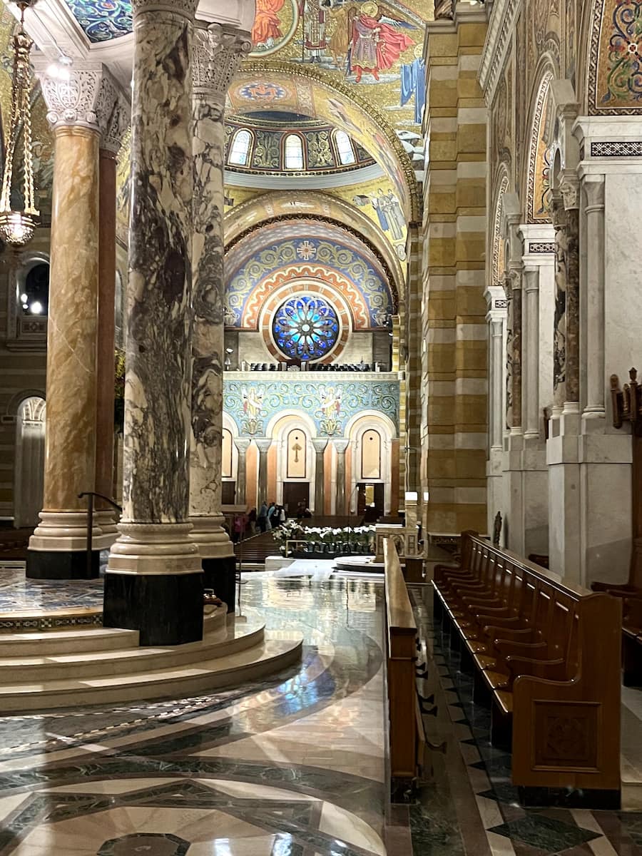 Mosaic masterpiece. My jaw dropped as I entered this magnificent cathedral and gazed upward at the world’s largest collection of mosaic art-41.5 million glass tiles covering 83,000 square feet. The Byzantine and Romanesque-style Cathedral Basilica took my breath away with its shimmering gold, blue, and red designs depicting biblical scenes.