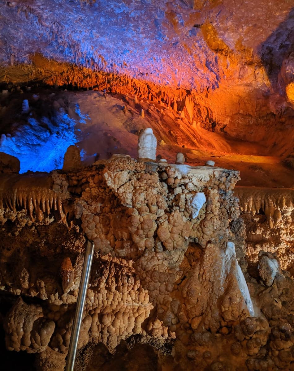 Underground wonder. I ventured 60 minutes southwest of St. Louis to explore one of Missouri’s most spectacular cave systems-a 4.6-mile labyrinth of limestone chambers formed over 400 million years. The 80-minute guided tour took me through colorfully lit rooms with dramatic formations.