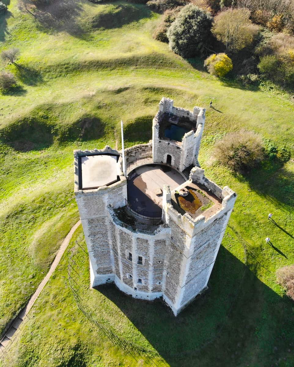 Architectural Marvel: Standing 90 feet high, Orford Castle’s unique polygonal tower immediately caught my eye as I approached. Unlike any other castle in England, its distinctive design features three rectangular towers jutting out from the central structure, creating an unforgettable silhouette against the Suffolk sky.