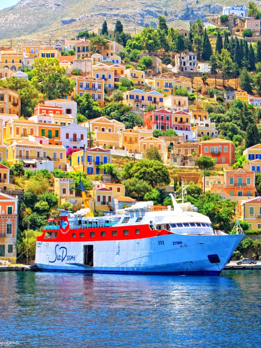 You can reach the island of Symi from Rhodes by ferry or hydrofoil, with journeys taking between 55 minutes and 1.5 hours. Ferries depart several times daily, especially in summer, and arrive at the port town of Symi.