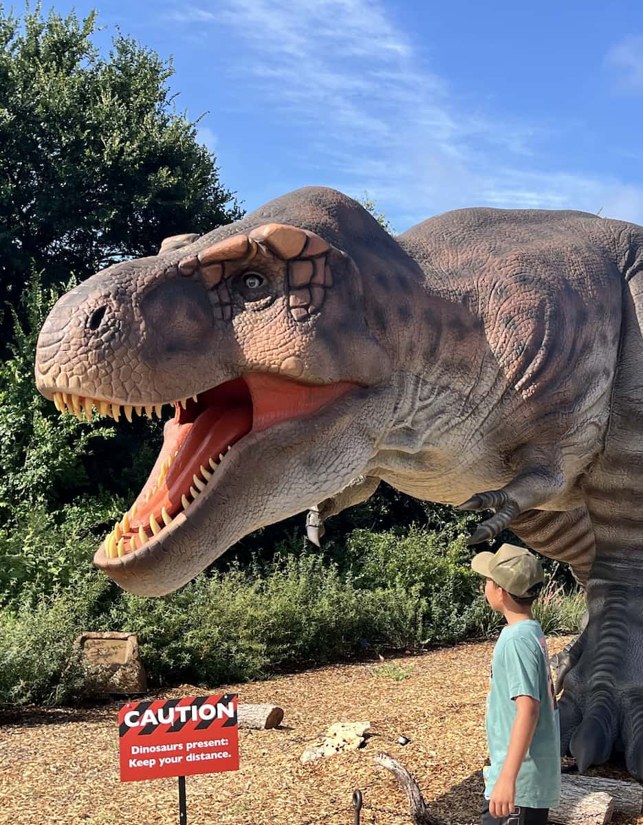 Adventures with Dinosaurs. Dinosaur Valley State Park, about a 1.5–2 hour drive from Dallas, is a dream for anyone fascinated by prehistoric life. As soon as I arrived, I was greeted by two giant dinosaur models—an Apatosaurus and a T-Rex—standing guard at the entrance. These life-size sculptures are perfect for photos and set the mood for a day of discovery. The main draw here is the real dinosaur tracks embedded in the bed of the Paluxy River. Walking alongside these ancient footprints, I felt like I’d stepped back in time.