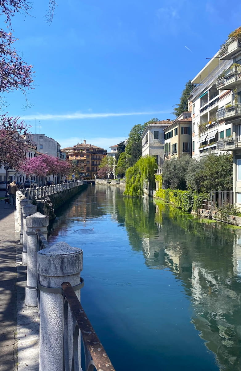 Local Life. This area gives you a glimpse into authentic Treviso life. I watched elderly residents chatting from their windows above the canal and fishermen trying their luck in the clear waters. Instead of paying for an expensive canal-side lunch, grab a panino from a nearby bakery and enjoy it sitting along the canal banks – you’ll get the same views for a fraction of the price!