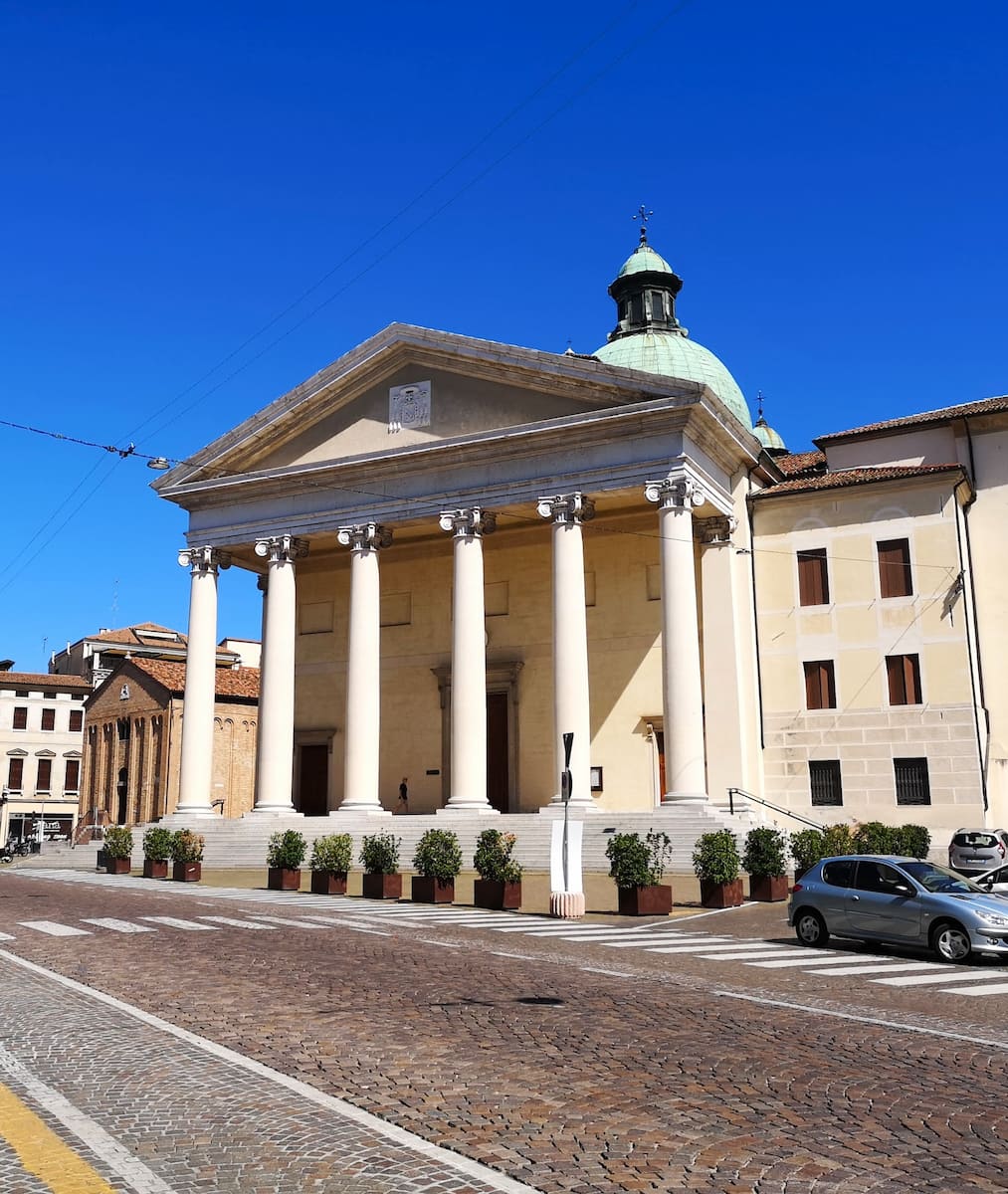 Architectural Marvel. The Cattedrale di San Pietro Apostolo stands as one of Treviso’s most impressive landmarks with its neoclassical façade and grand staircase leading up to six Ionic columns at its entrance. Inside, I was amazed by its serene atmosphere and stunning domes that seem to stretch endlessly upward.