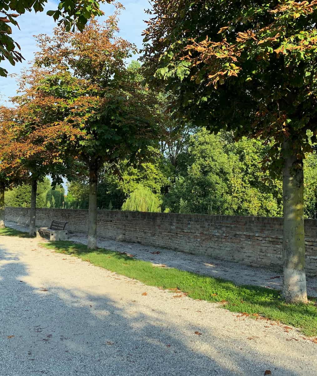 Scenic Walkways. The walls are flanked by canals and shaded by towering chestnut trees, creating a picturesque setting for walking or cycling. Bring your own snacks or drinks to enjoy along the walls rather than buying them in town – it’s cheaper and more relaxing!