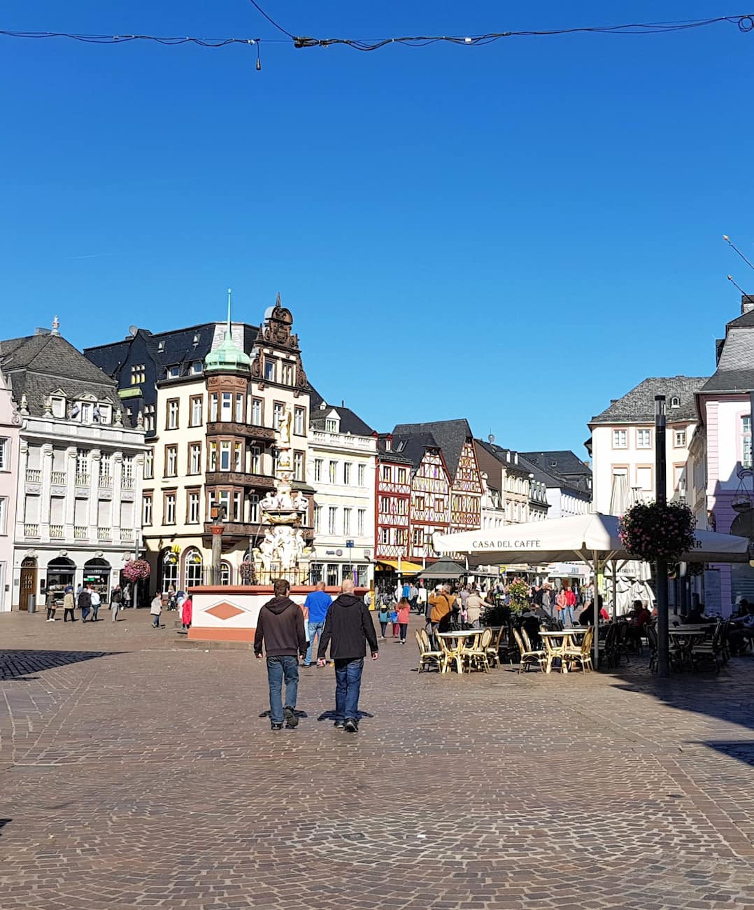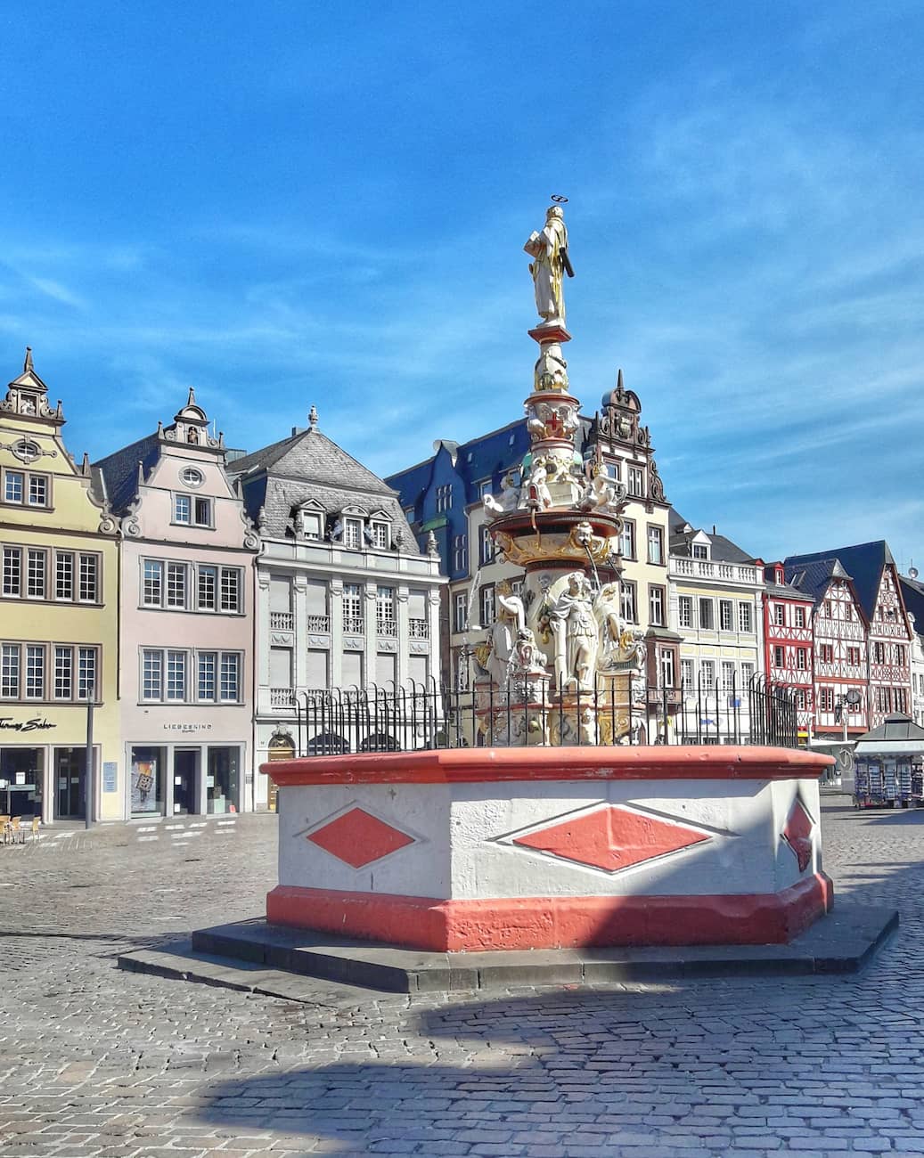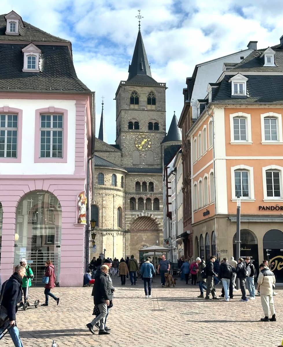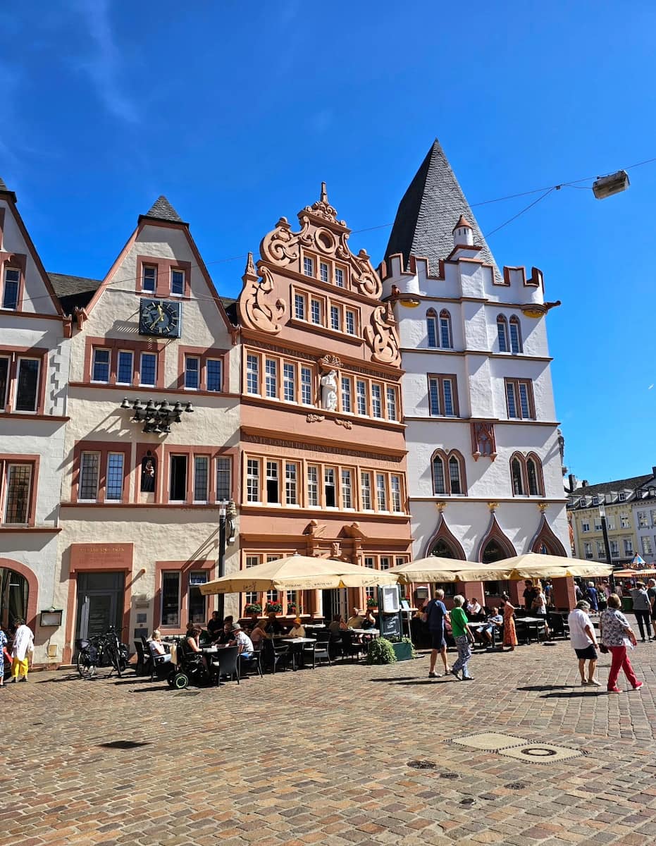 Market Experience. By 10:30 AM, head to the bustling Hauptmarkt, Trier’s medieval market square. Grab a fresh pretzel or pastry from a local vendor and soak in the vibrant atmosphere while admiring the colorful facades of historic buildings.