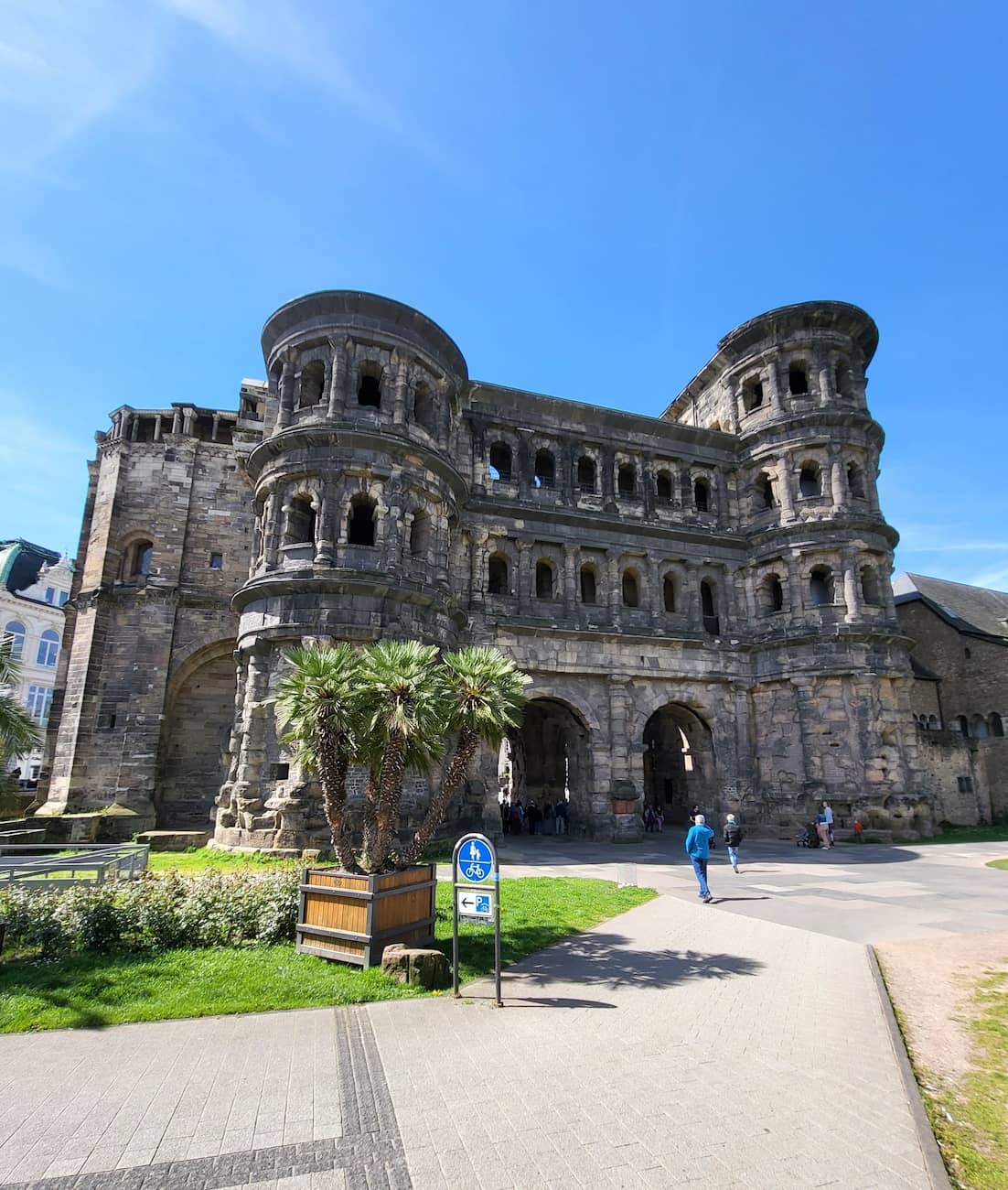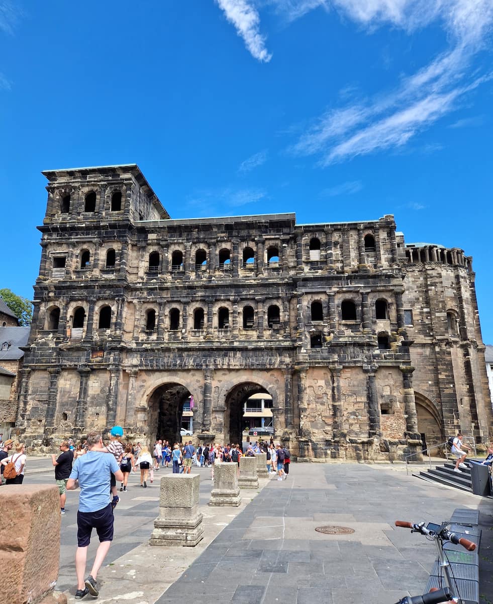 First Impressions. Standing before the massive black-stone gate, I’m instantly transported back to Roman times. The Porta Nigra, Germany’s best-preserved Roman city gate, towers an impressive 90 feet high and stretches 118 feet long.