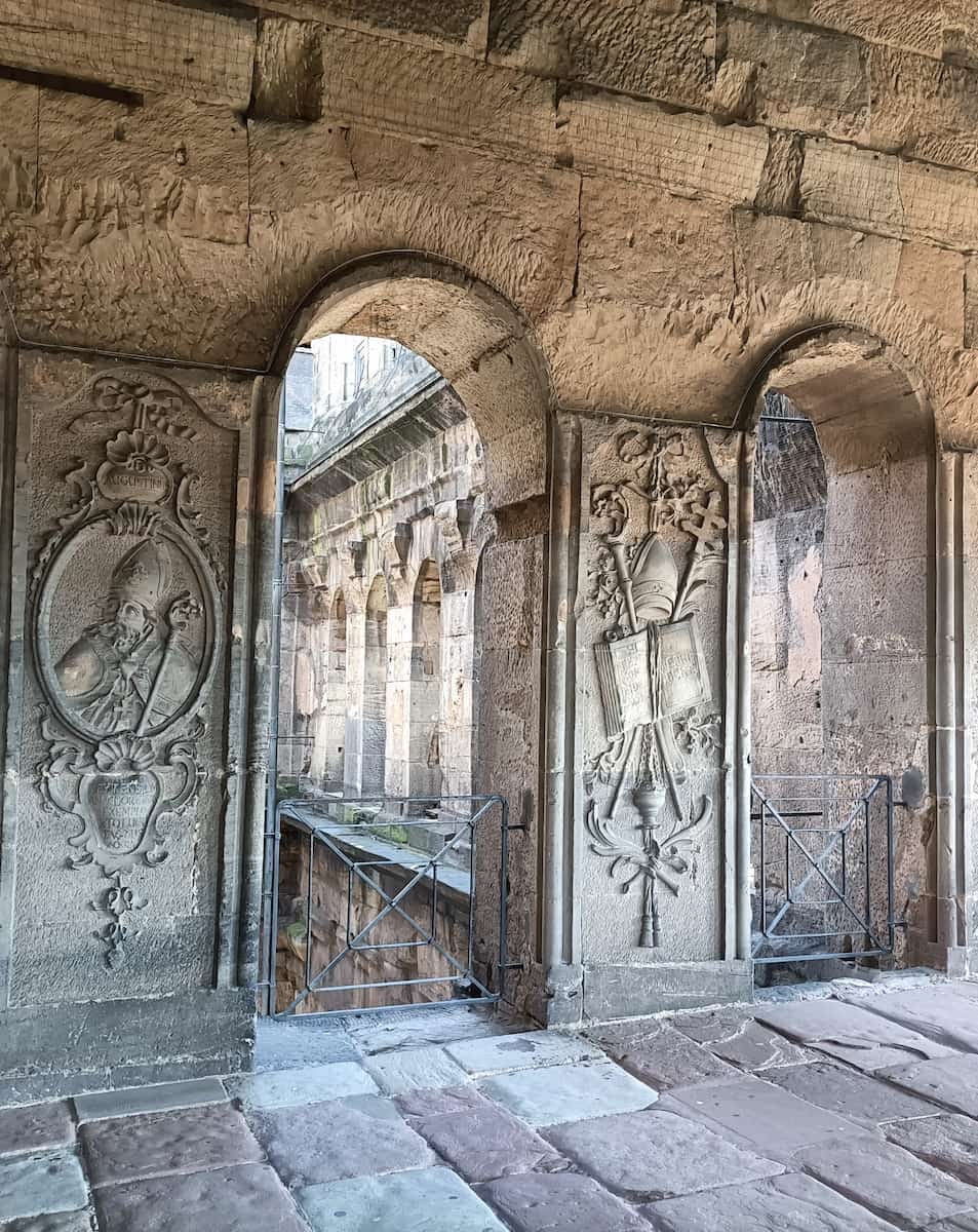 Architectural Highlights. The cathedral’s interior combines Romanesque structure with Baroque decorations and Gothic vaulting. I particularly love the contrast between the ancient Roman brickwork and the later medieval additions.