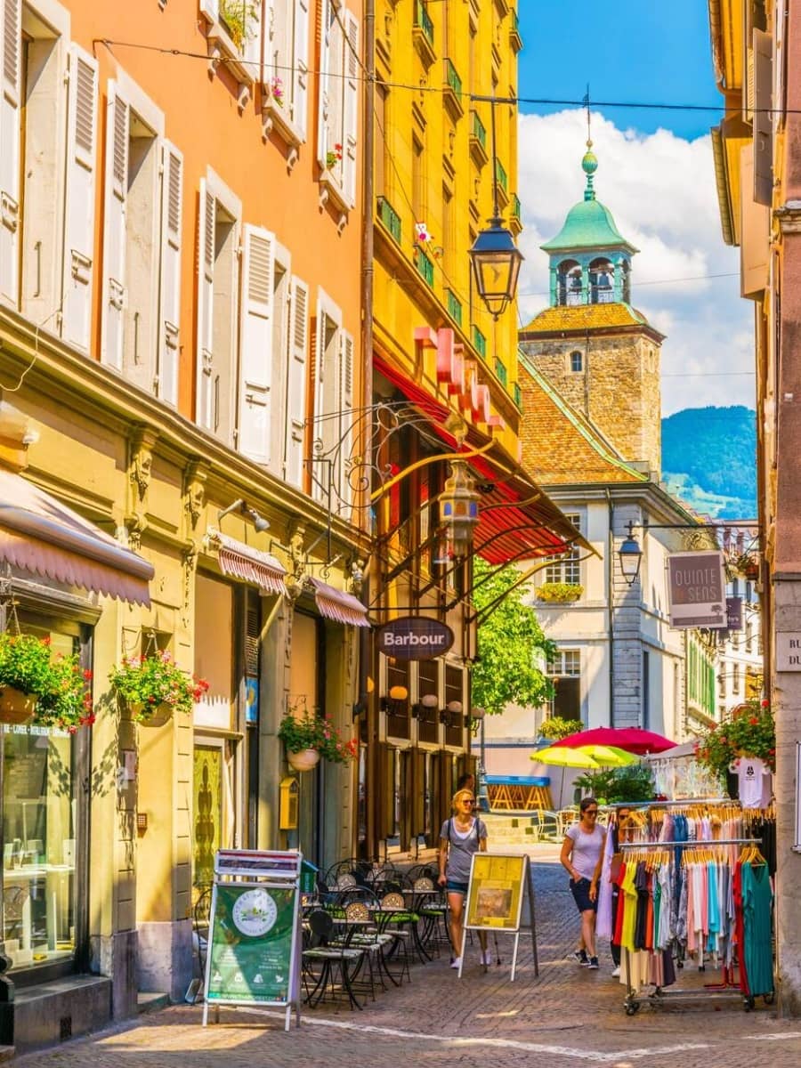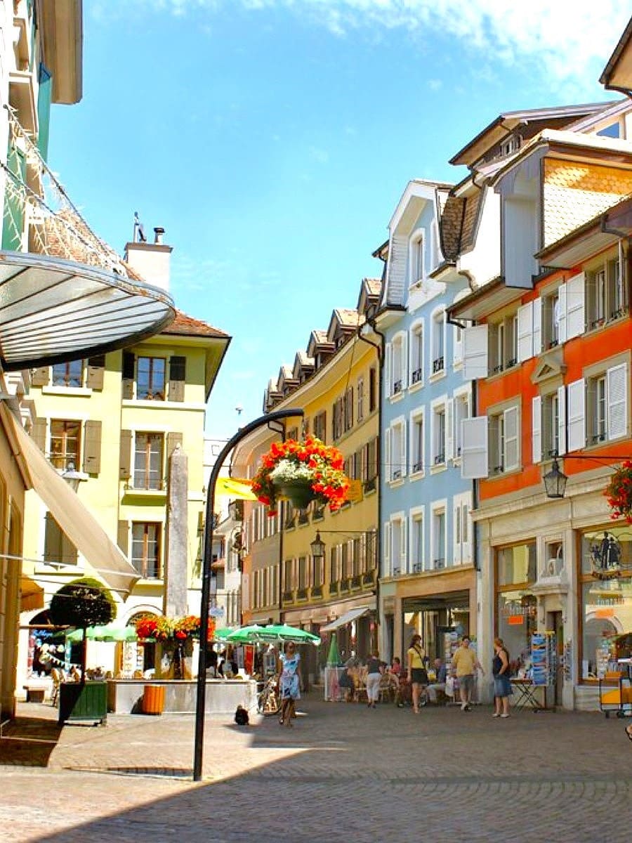 The old town of Vevey is full of pedestrian streets, boutiques, bakeries, and historic buildings. It’s worth exploring for its unique Swiss charm and is a great base for holidays to Switzerland.