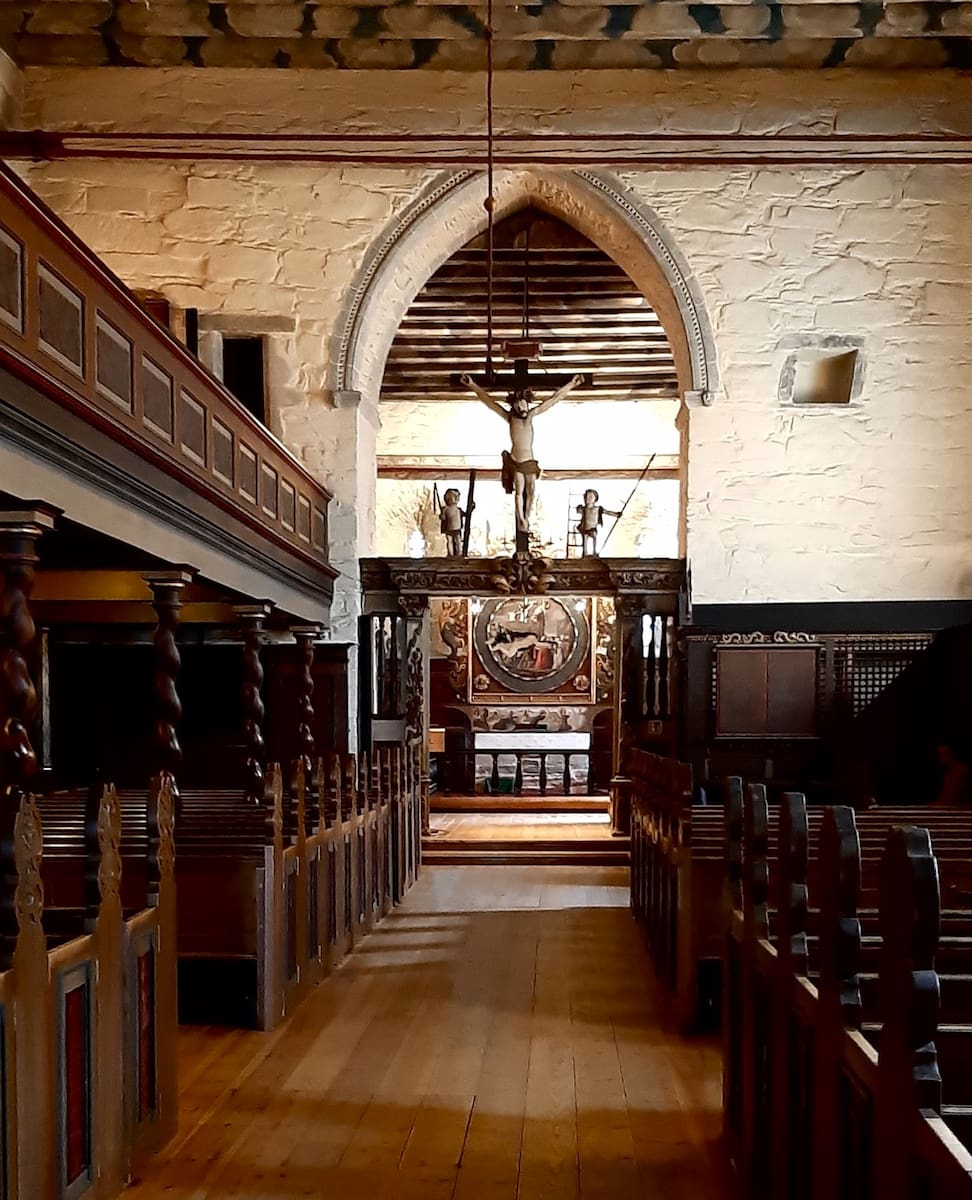 - Voss Church with autumn backdrop (architectural contrast)